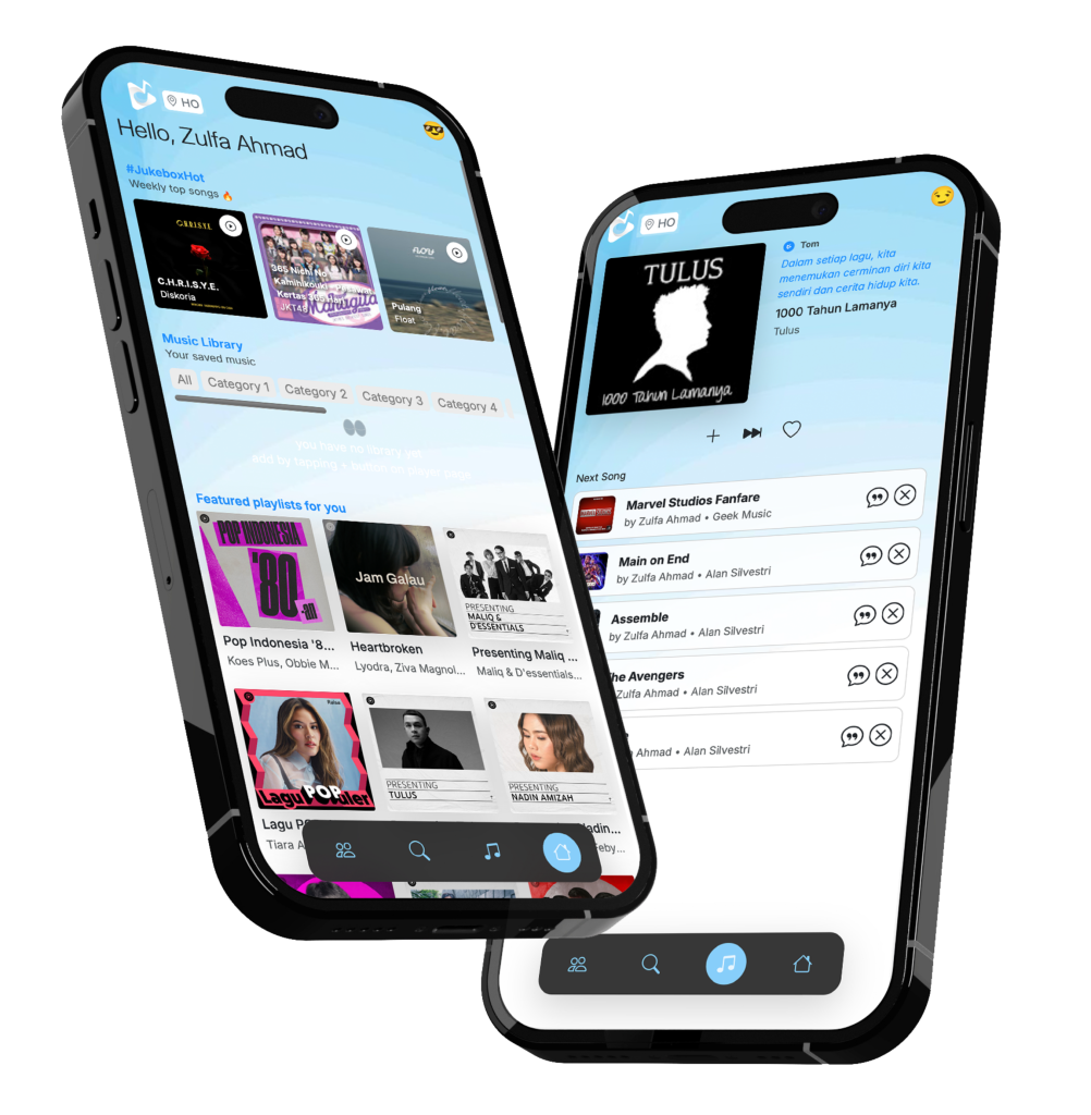 Lebih dari sekadar aplikasi musik, Jukebox5D adalah ruang di mana Anda dan teman-teman menjadi DJ dalam satu panggung yang sama. Rasakan serunya berbagi selera musik dan ciptakan playlist kenangan tak terlupakan bersama.